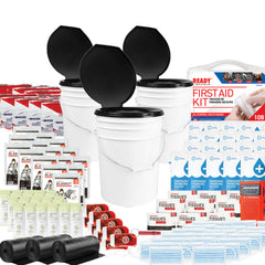 40 Person Essential Kit for workplaces or organizations. Contains essential emergency supplies such as food, water, light, blankets, first aid kits, and more.