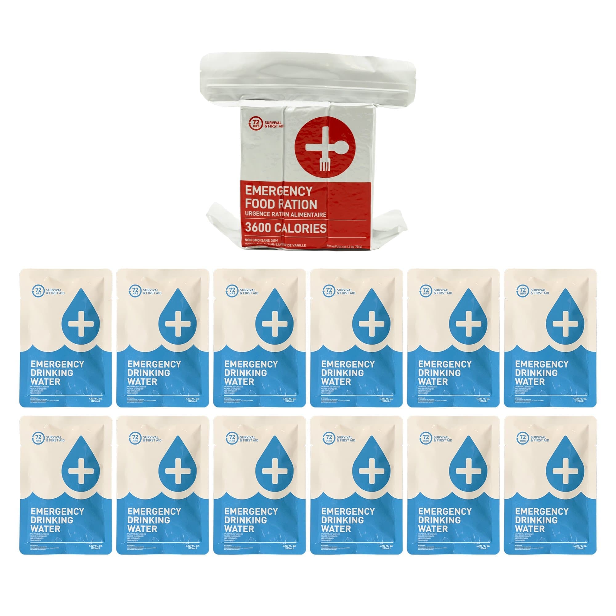- Emergency food and water rations are packaged in a ziplock bag to conveniently store in emergency backpacks